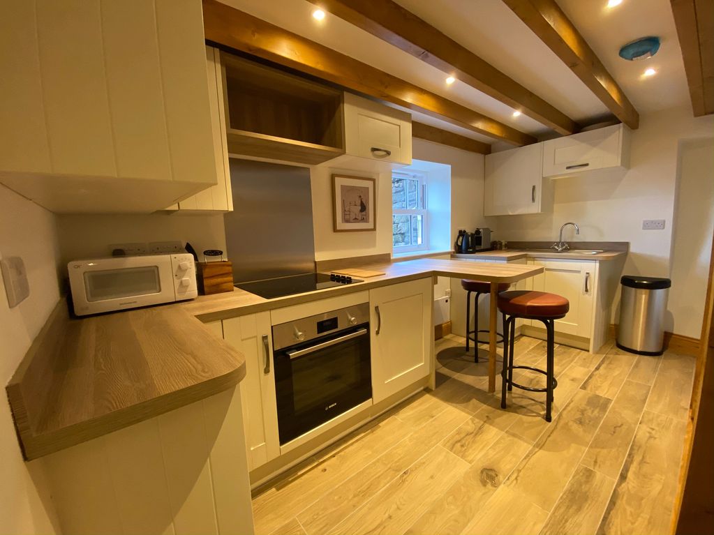 The kitchen has a cooker, fridge, microwave, breakfast bar and stools. We also provide some basic food items for your arrival; however, if you’re short of anything, or need some suggestions on where to pick up some groceries then please let us know. If it’s a bottle of wine or beer or a microwaveable meal, and you don’t fancy the drive to a sho